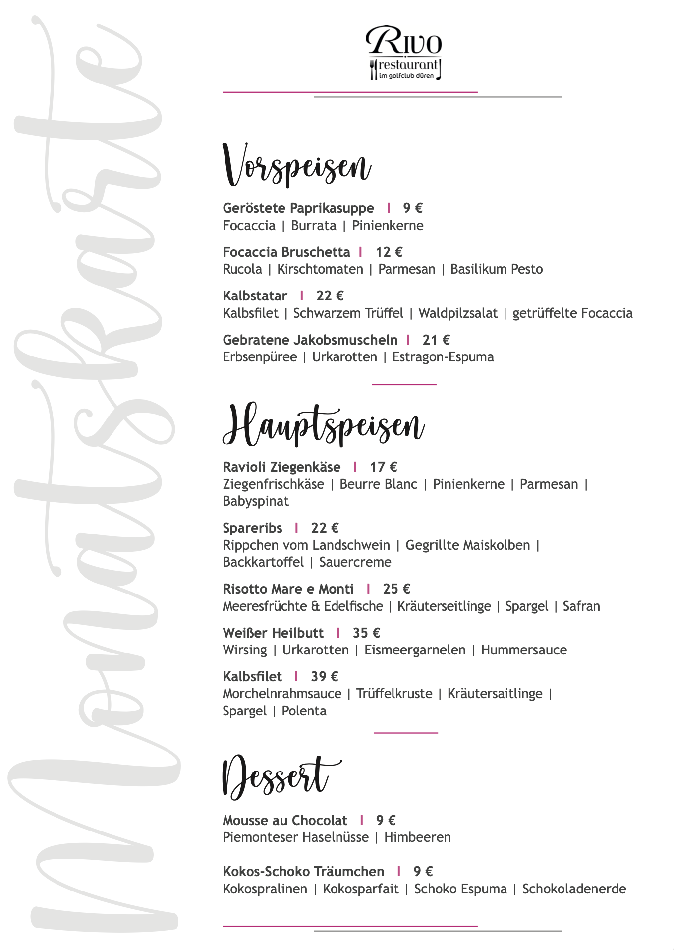 Monatskarte Hier sehen Sie die Speisekarte mit monatlich wechselnden Gerichten. Weitere Köstlichkeiten finden Sie auf unserer Hauptkarte und Wochenkarte.
